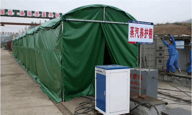 對(duì)于表面系數(shù)大,養(yǎng)護(hù)時(shí)間要求很短,早期強(qiáng)度要求高的混凝土工程,或當(dāng)自然氣溫較低,在技術(shù)上有困難時(shí),可用蒸汽養(yǎng)護(hù)工藝對(duì)新灌注的混凝土進(jìn)行養(yǎng)護(hù)。蒸汽是一種良好的熱載體,它在冷凝時(shí)釋放熱量大,且具有較高的放熱系數(shù),它既能加熱,使混凝土在較高的溫度下硬化,又能供給一定的水分,使混凝土不致因水分過量蒸發(fā)而出現(xiàn)表面干燥脫水。在工藝上它比短時(shí)加熱復(fù)雜;在混凝土強(qiáng)度增長(zhǎng)上它可根據(jù)要求達(dá)到拆?;蚴芎蓮?qiáng)度,這是一種快速濕熱養(yǎng)護(hù)方法。