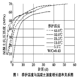 試驗說明,混凝土澆筑后強度的增長速率是隨著養(yǎng)護溫度的增高而加快的,也是隨著齡期的增長而漸減的。溫度對混凝土強度的影響主要是在形成強度的前10d左右的時間,而對混凝土在28天后的強度影響比較小。