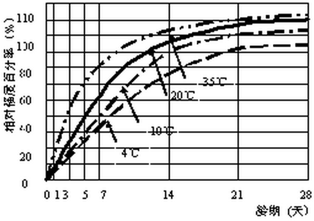 混凝土強(qiáng)度與溫度和齡期的關(guān)系曲線圖