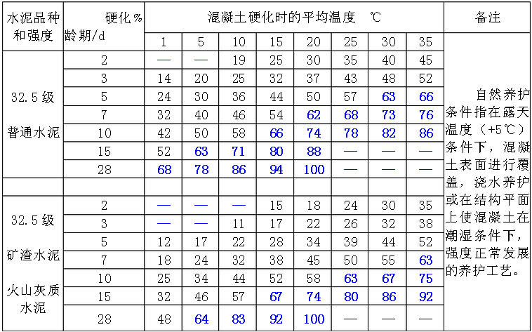 混凝土強(qiáng)度與溫度和齡期的關(guān)系表