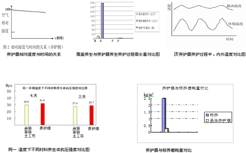 恒久保濕——養(yǎng)護(hù)期間,每平方米最少可固定0.8kg水分,膜內(nèi)相對(duì)濕度達(dá)80%以上;