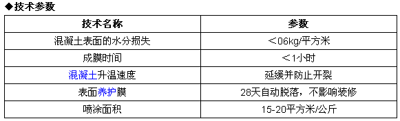 ☆成膜時(shí)間:噴涂后30分鐘左右成膜,此膜可長(zhǎng)期對(duì)混凝土起養(yǎng)護(hù)作用。